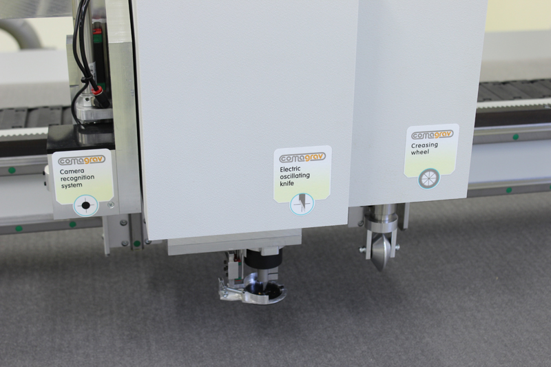 На планшетный плоттер Comagrav DIGI могут быть установлены разнообразные модули и инструменты для резки, биговки, гравировки, фрезеровки различных материалов.