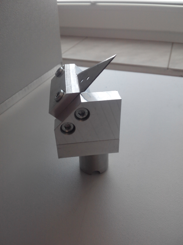 для резки тонких материалов с настройкой глубины. Используется, например, для резки самоклеющейся виниловой пленки на подложке.